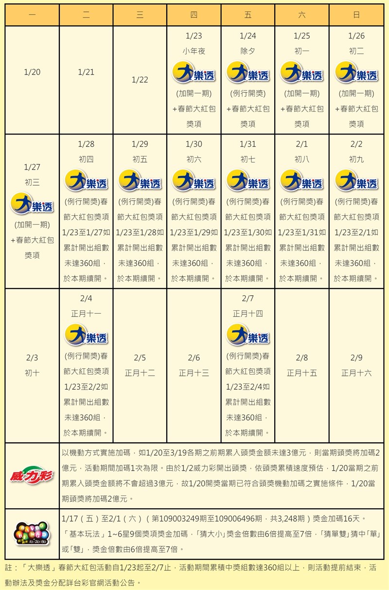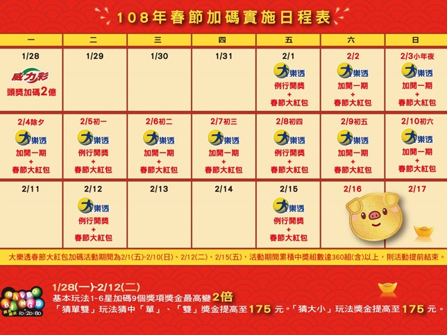 108 台灣彩券春節大紅包 2019 大樂透加碼號碼 威力彩過年開獎 優惠福利社
