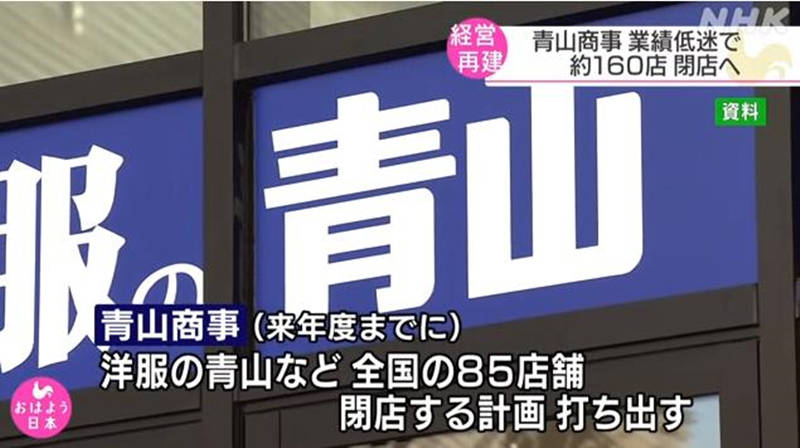 因巨额亏损 日本大型西装品牌 青山洋服 明年将关闭约160家店铺 商事